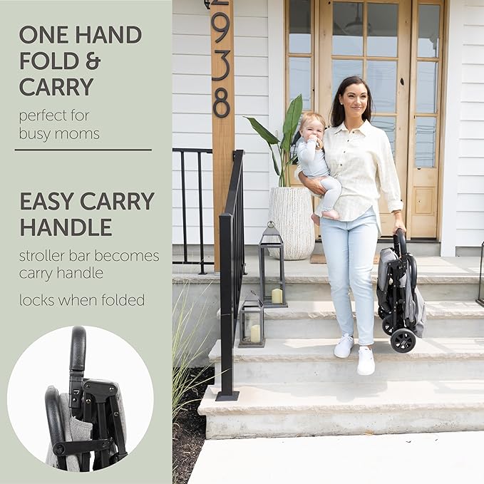 - Convenient carry handle: Once folded, our compact travel stroller features a convenient carry handle, making it easy to transport. You can carry it comfortably with one hand, leaving your other hand free to hold your baby, bags, or other essentials.