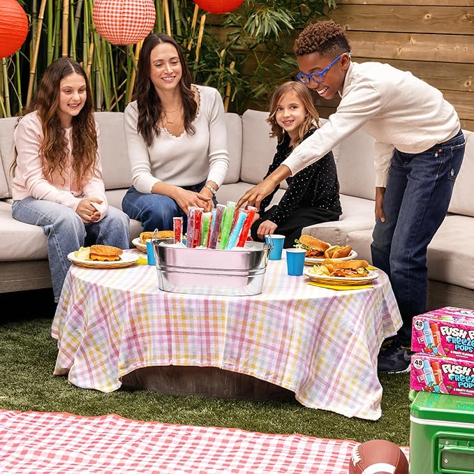 Push Pop Freezer Pops - Ice Popsicles Frozen, Individually Wrapped Variety Pack, 6 Classic Fruity Flavors, Fun Colored Frozen Treats for Party Favors, Bulk Snacks for Kids (48 Count)