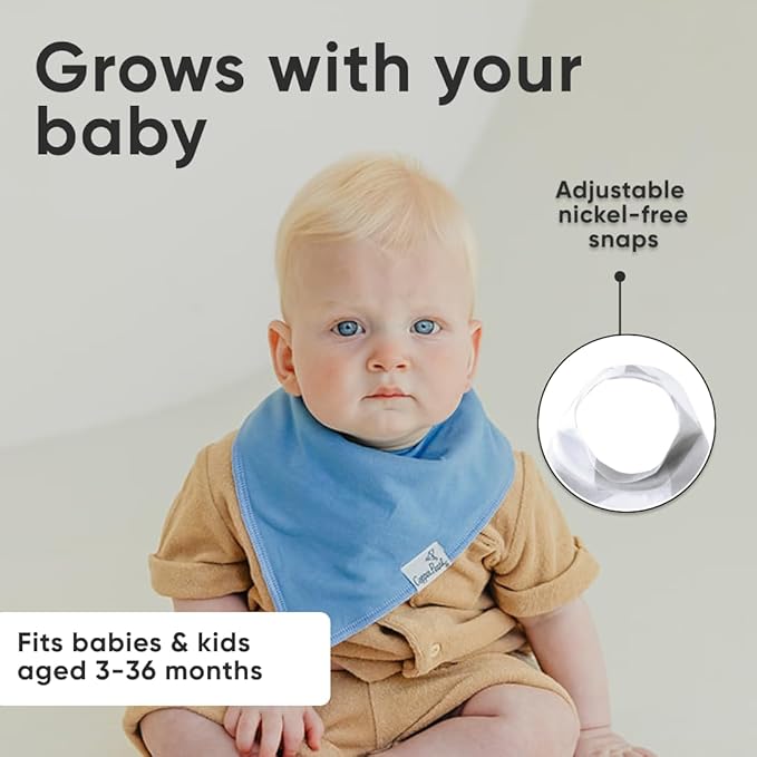 - ADJUSTABLE NICKEL FREE SNAPS; Each baby bandana bib comes with 2 nickel-free snaps that allow each bib to be adjustable in size to fit newborns and toddlers, with ages ranging from 3-24 months; The snaps are secure, making it difficult for infants and toddlers to unfasten but are easy for parents to snap on and off