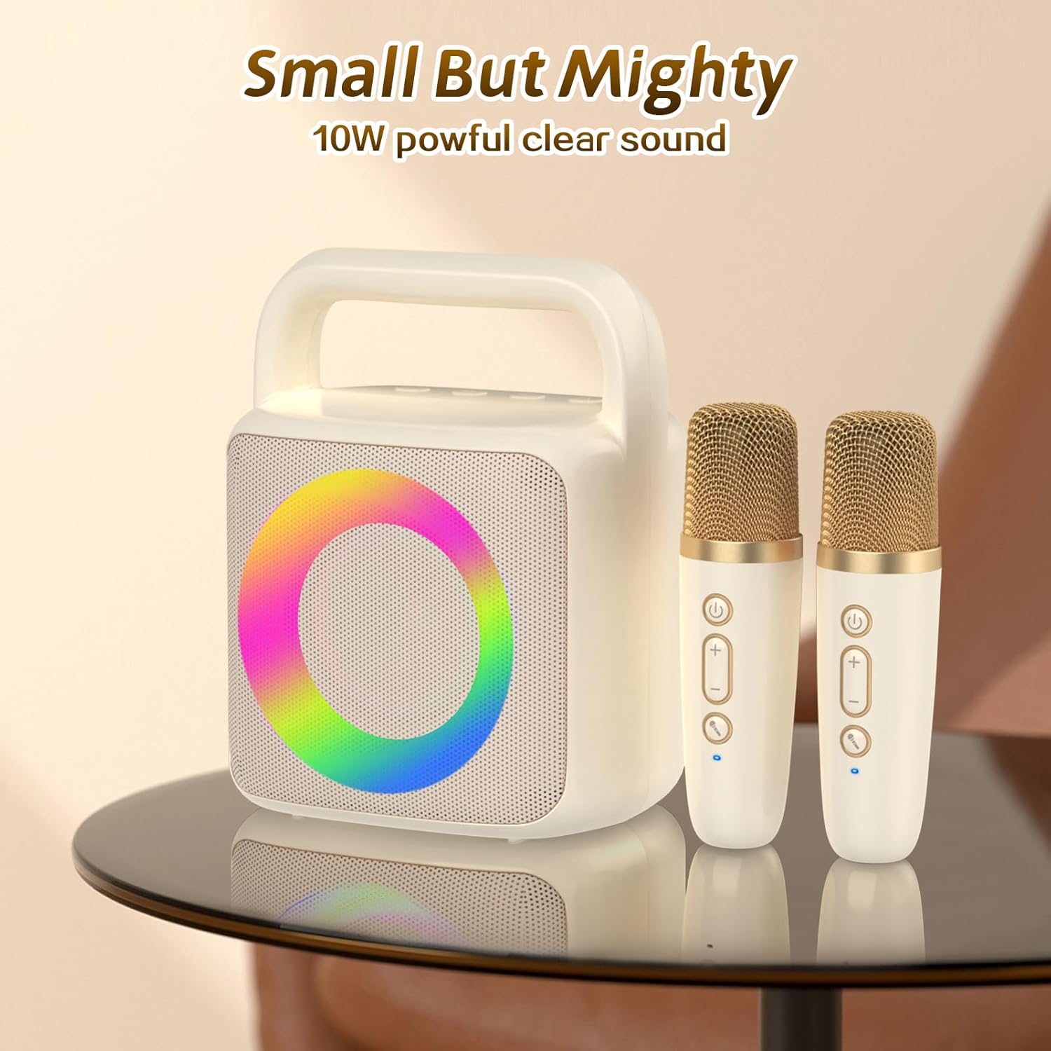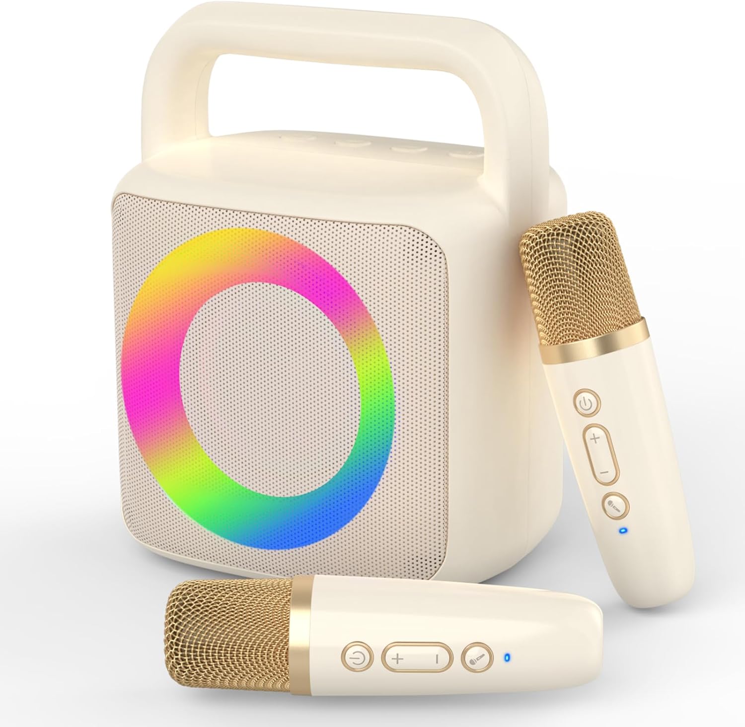 Karoke Machine with 2 Wireless Mics,Portable Karaoke Microphone Toys with Colorful Lights and Magic Voices for Camping Party, Birthday Gift for Boys Girls Teenages Adults