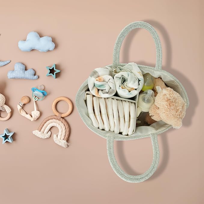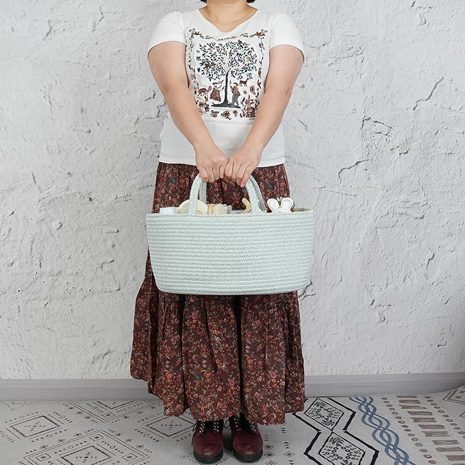 Diaper Caddy Organizer Cotton Rope Baby Basket Nursery Storage and Portable Tote Bag for Car Ideal Baby Shower Gifts and Registry Must-Have for Newborn Essentials Large light green