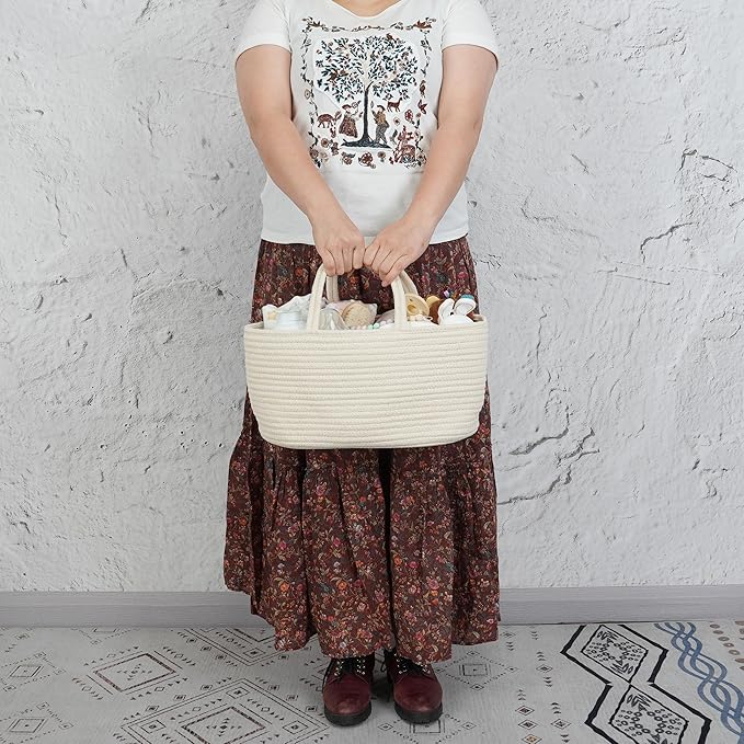 Diaper Caddy Organizer Cotton Rope Baby Basket Nursery Storage and Portable Tote Bag for Car Ideal Baby Shower Gifts and Registry Must-Have for Newborn Essentials beige