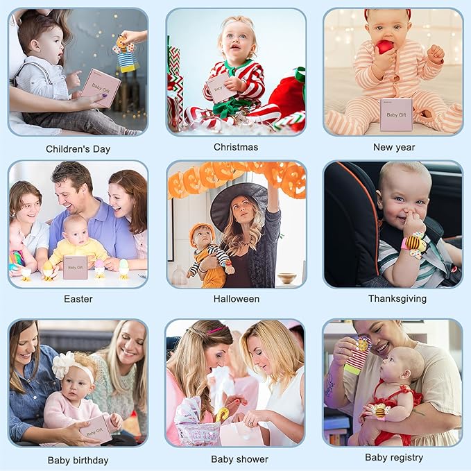 - PERFECT BABY GIFTS -- Give these Soft Baby Rattles Toys as the perfect infant toy gift.Suitable for Baby showers/Baby sprinkle/Sip & See gift/Newborn baby gift/Birthday gift/Registry gift/Easter/Halloween/Thanksgiving/Christmas/Holiday gift/Christening gift/'Just because'gift.