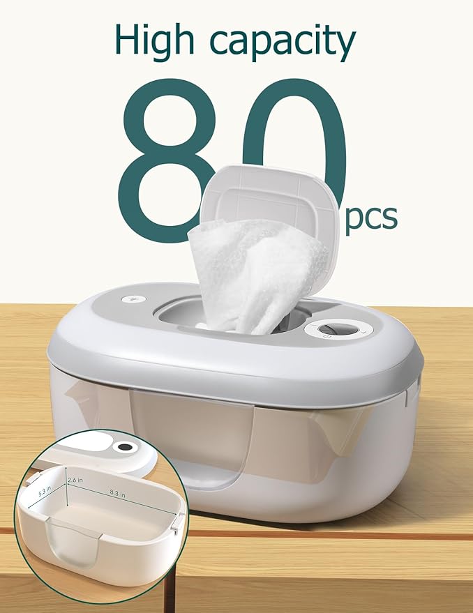 - LARGE CAPACITY: Able to hold up to 80 wet wipes at a time, our wipe warmer makes diaper changing a more efficient process. Plus, the transparent window lets you know when you're running low so you never get caught without wipes