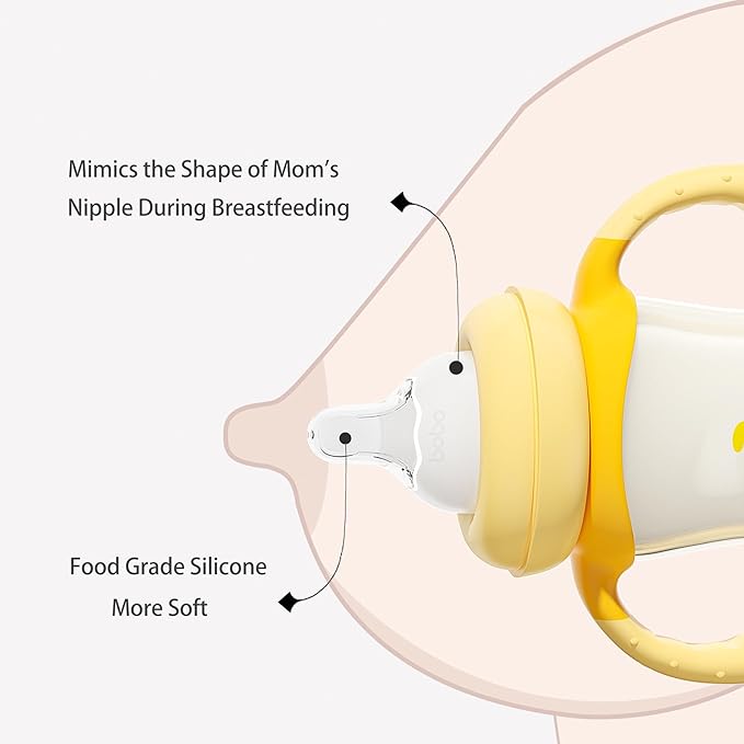 - YOHKOH baby bottle is made of PPSU material, clear and tasteless, high temperature resistance of 356℉, durable and lightweight. Paired with a liquid silicone nipple, it can help empty the bottle of air, and the baby can comfortably complete the feeding.