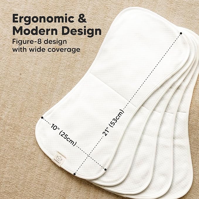 - Ergonomic Comfort - Snuggle up with these versatile organic burping cloths for babies, featuring a smart figure-8 design that stays snug on your shoulders. Lightweight and broad-coverage, they effortlessly guard your clothes against sneaky spit-ups.