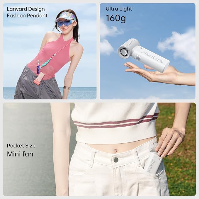 - Small In Size, Portable Design: The ultra-small body design and 160g ultra-light small fan allow you to easily put it in your pocket or bag. This portable fan has an lanyard, perfect for travel, camping and outdoor adventures