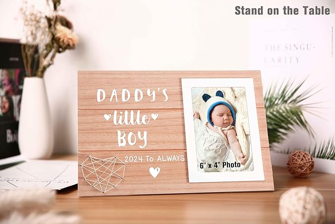 Father's Day Gift-First Fathers Day Gift -Christmas Birthday Present for Dad-New Dad Present -Daddy's Little Boy 2024 to Always-Baby Boy Shower Keepsake- Photo Picture Frame
