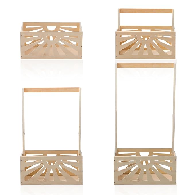 - Dual Function: This baby storage crate hamper with handle offers dual functionality of storage and hanging. The wooden crate design on the bottom provides enough space for you to store plush toys, clothes, towels and more. Compared to other gift containers that only provide storage, our baby shower crate box comes with a spacious crate and hanging rack, enriching the display form, making it a practical and stylish choice