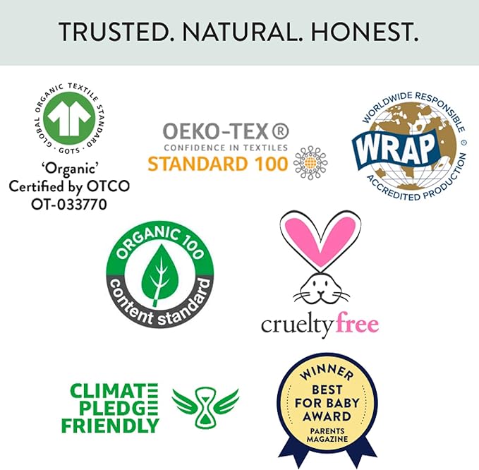 - 100% ORGANIC COTTON: Certified by GOTS, the leading world-wide standard for products made in sustainable manufacturing facilities, without the use of synthetic pesticides, non-toxic, PVC free and without heavy metal phthalate dyes