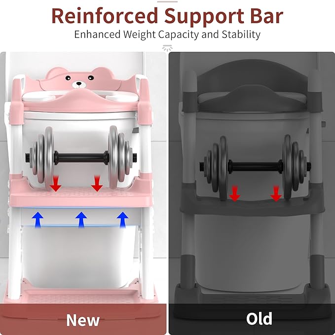 Potty Training Seat, Upgrade 2 in 1 Potty Training Toilet for Toddler, Toddler Toilet Seat for Boys Girls with Support Bar, Anti-Slip Pad and Step Stool (Pink)