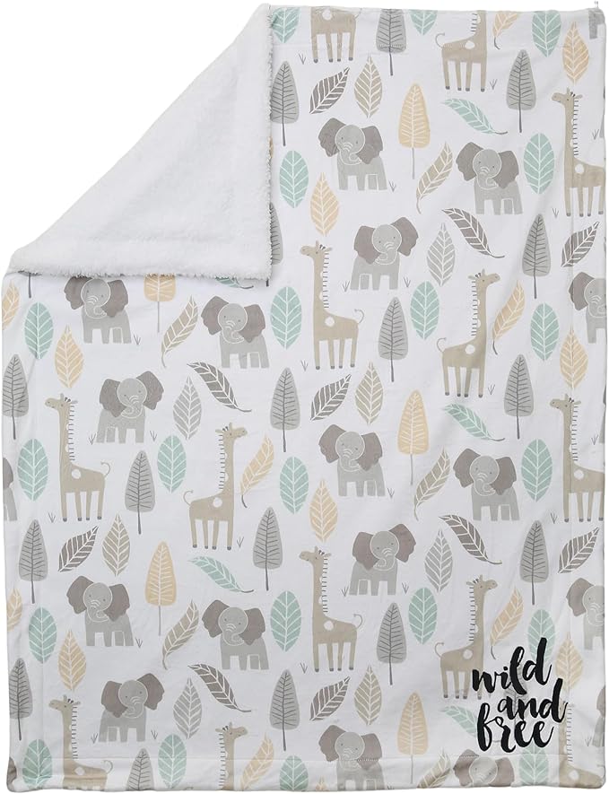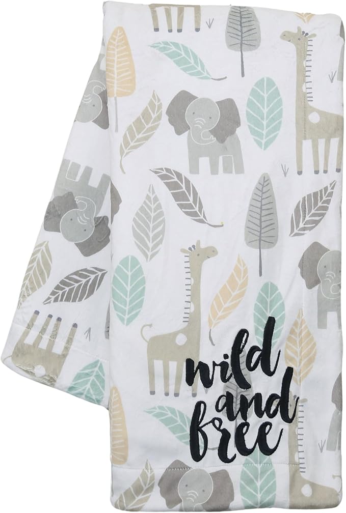 Lambs & Ivy Jungle Friends Elephant/Giraffe Safari Soft Fleece Baby Blanket