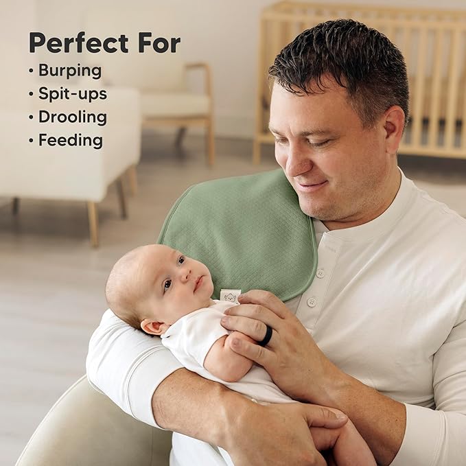- Ergonomic Comfort - Snuggle up with these versatile organic burping cloths for babies, featuring a smart figure-8 design that stays snug on your shoulders. Lightweight and broad-coverage, they effortlessly guard your clothes against sneaky spit-ups.
