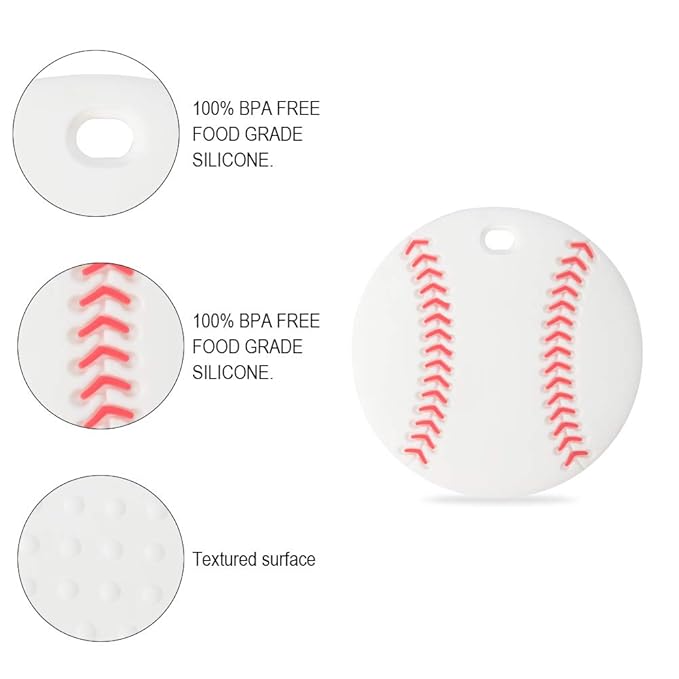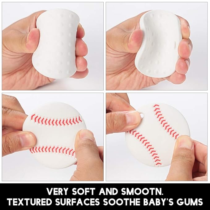 Baby Food Grade Silicone Sport Ball Teether Toy with Pacifier Clip Holder,Teething Toys Gift Set for 3 Months+ Boys and Girls,Freezer Safe,BPA Free. (Baseball)