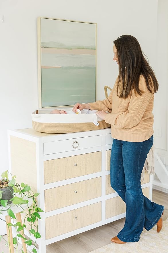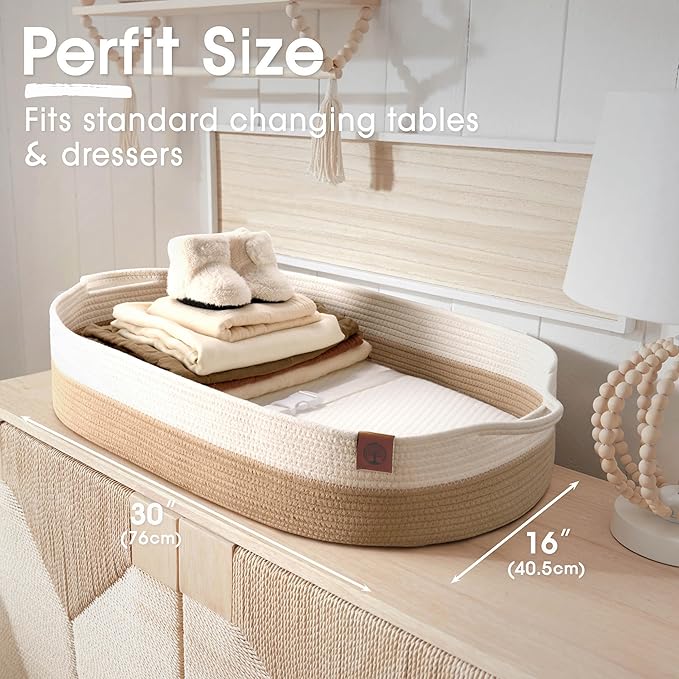 - MULTI-FUNCTIONAL: Our diaper changing station features durable handles. It can be used on a changing table, dresser, bed, sofa, or car while traveling. As the baby grows, this nursery changing basket can be used for toys or as a stylish storage option in any room of your home. Additionally, it can serve as photography props, laundry baskets, toys, table topper or clothing storage organizer.