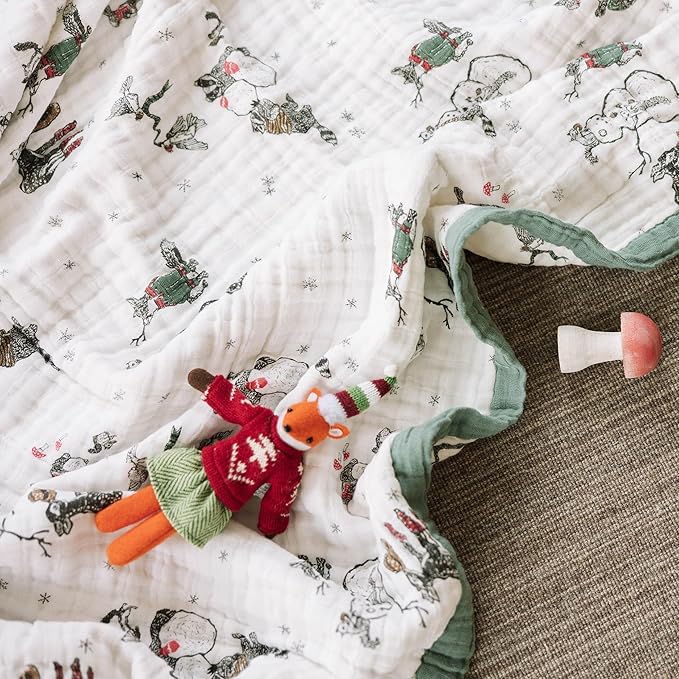 Little Unicorn Premium Quilted Throw | Super Soft, Multi-Layered Muslin XL Blanket| Great for Kids & Families (Snow Day)