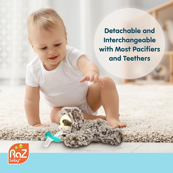 - Easy to Clean & Sterilize: The RaZbuddy plush is machine washable for effortless maintenance, while the detachable JollyPop pacifier should be sterilized first, then dishwasher-safe for easy cleaning and convenient attachment swaps.