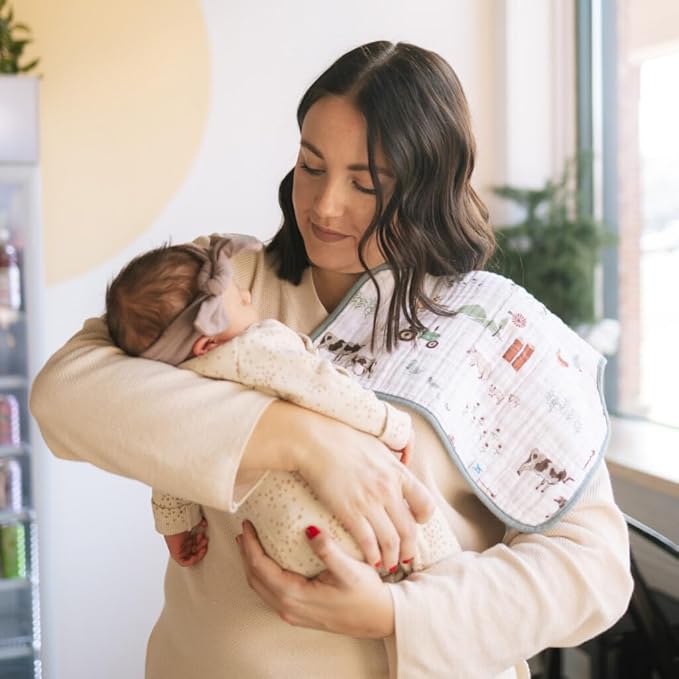 Little Unicorn Ultra-Absorbent Premium Burp Cloth 2 Pack | Soft on Baby's Skin | Larger Size | Ergonomic Design | Set of 2 (Farmyard)