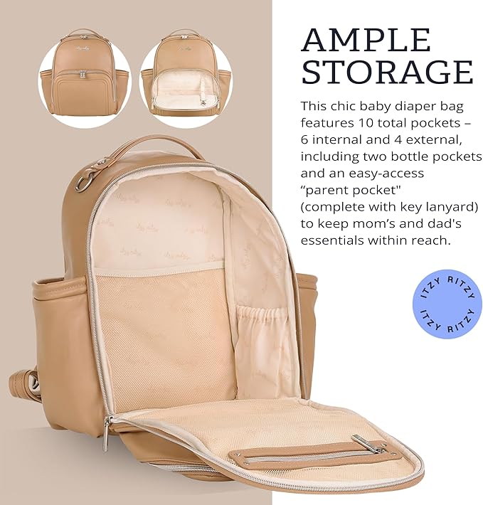 - STYLISH & FUNCTIONAL DESIGN: The Itzy Mini Plus diaper bag backpack is as stylish as it is functional! Our vegan leather diaper bag backpack is the perfect size to grab and go for quick outings or when you only need to pack the essentials.