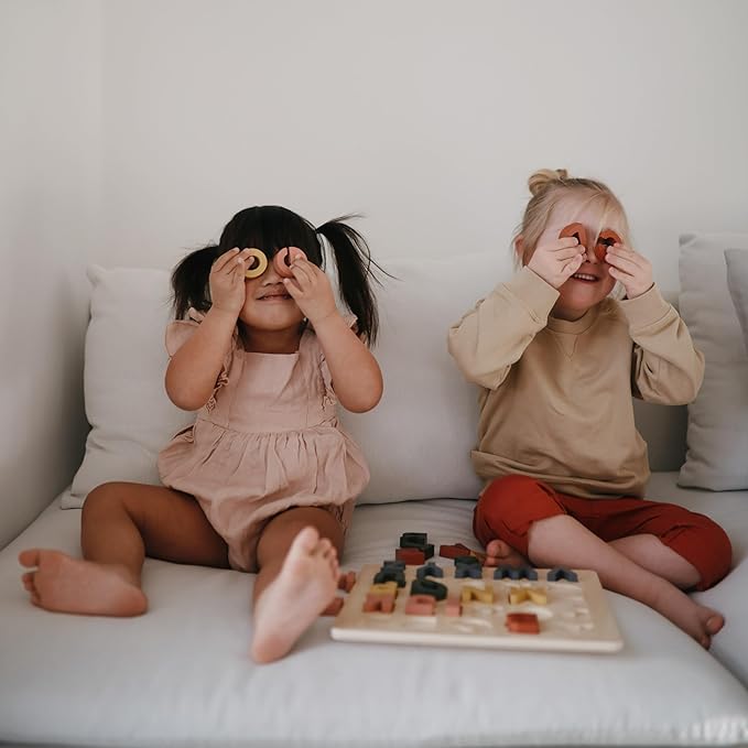 mushie Wooden Alphabet Puzzle | for Kids 3 Years+ | Preschool Educational & Toddler Montessori Toys (26 pcs)