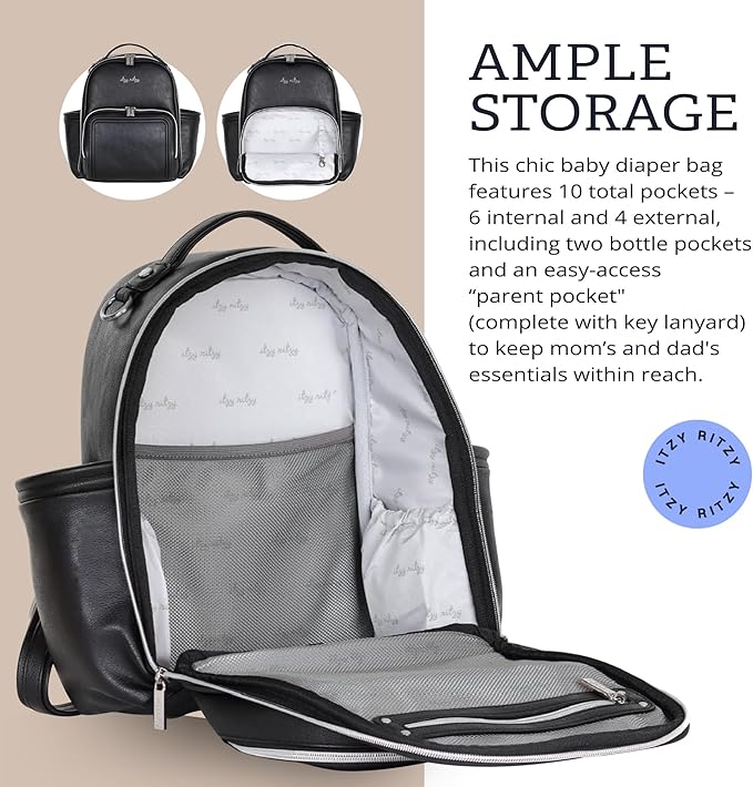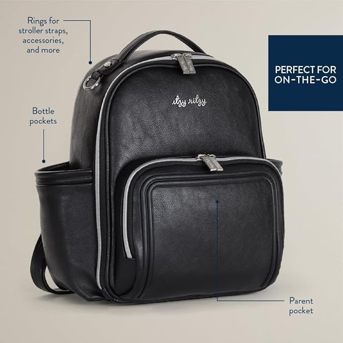 - CHIC & PRACTICAL DESIGN – The Itzy Ritzy Mini Plus Mini Diaper Bag Backpack blends modern style with everyday practicality. Made from vegan leather, this compact and chic travel diaper bag is perfect for quick outings when you need only the essentials for your baby. Its gender-neutral design ensures it’s ideal for any parent.