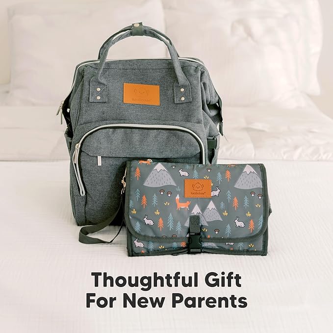 KeaBabies Portable Diaper Changing Pad - Large Waterproof Baby Changing Mat, Compact Travel Diaper Clutch, Functional Pockets Fit Newborn Essentials, Wipeable & Padded Baby Changer (Fox Vale)