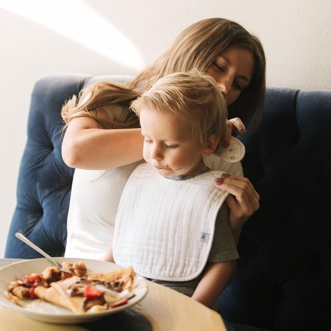 - MEALTIME DROOL CATCHER: We make our bibs with 3 layers of highly absorbent, 100% cotton muslin. The thickness of these layers helps soak up Baby’s drooling and absorb spills, while keeping food off the baby during breakfast, lunch, and dinner.