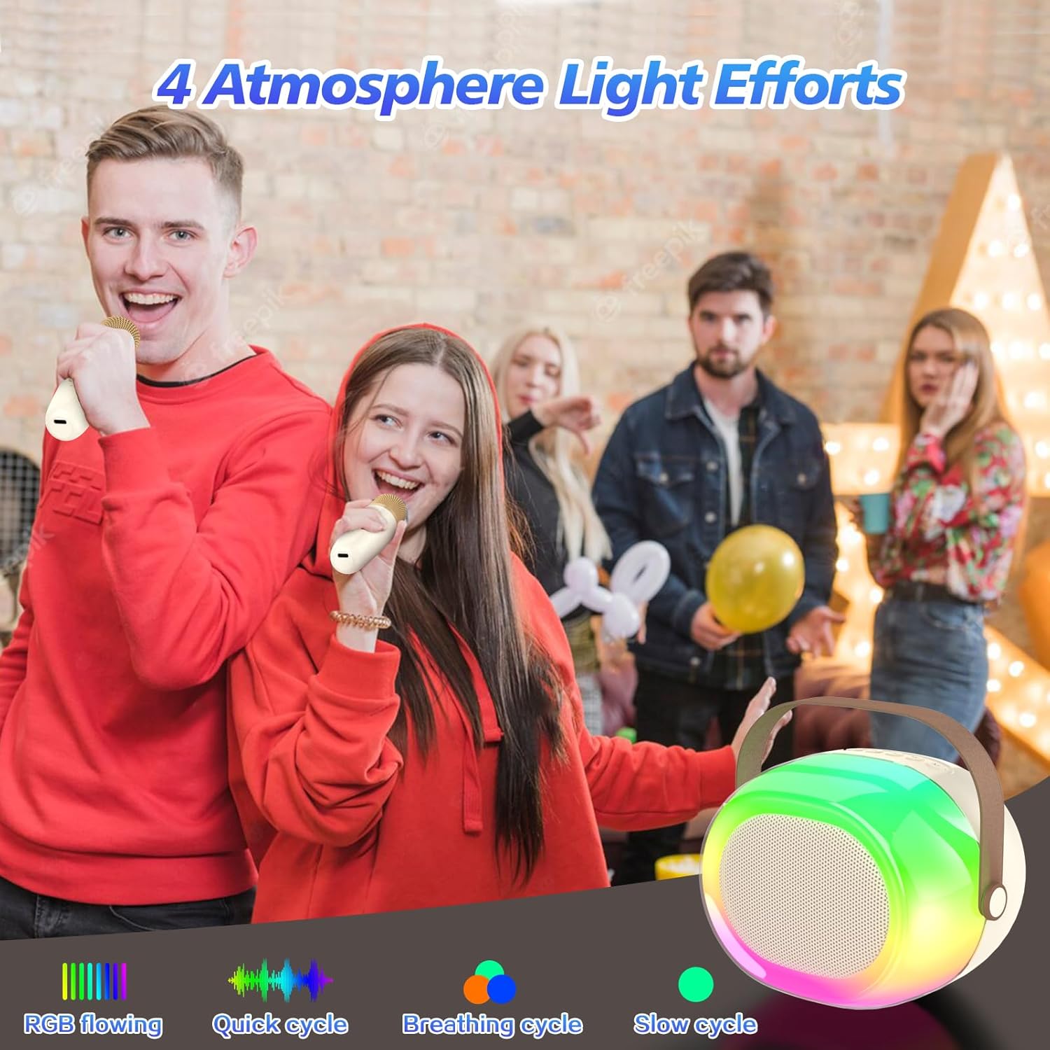 - Dynamic Atmasphere Lights - The Colorful dynamic atmosphere lights can be changed in different modes,will make the birthday party,home party,outdoor party friend gathering party more lively.