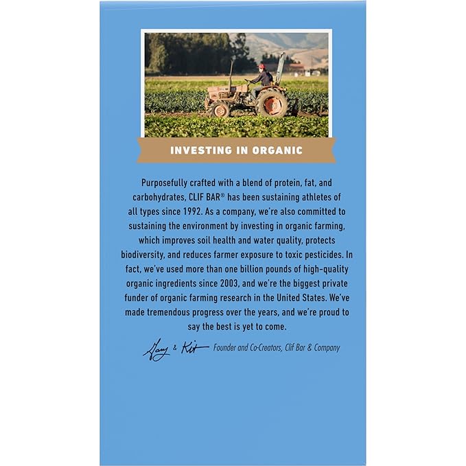 - SUSTAINED ENERGY: CLIF BAR is purposefully crafted with a mix of protein, fat, and carbohydrates to sustain active bodies before and during long, moderate-intensity activity