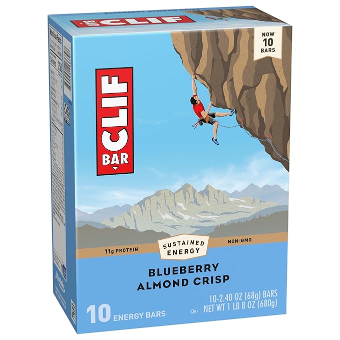 CLIF BAR - Blueberry Almond Crisp - Made with Organic Oats - Energy Bars - Non-GMO - Plant Based Protein Bars (10 Pack)