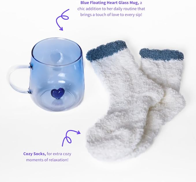 - ENHANCE YOUR DAILY RITUALS: Elevate your morning routine or tea time break with a delicate Floating Heart Glass Mug, a Nordic-style design that brings a touch of elegance and love to every sip. Pair it by wearing a set of tune-tone, plush socks. This duo invites you to indulge in moments of relaxation and self-care, enveloping you in comfort and joy as you navigate the journey of motherhood.