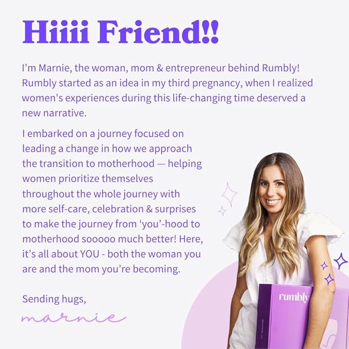 - BEST-IN-CLASS PREGNANCY ESSENTIALS: Stand out with our Baby Shower Boy box, featuring pregnancy must-haves for the expectant mom in your life. Each Rumbly box is thoughtfully designed to support and celebrate expecting moms, offering a balanced mix of items for both the woman she is and the mom she’s becoming. It's the perfect blend of luxury, comfort, and utility, making every moment of her pregnancy journey more memorable.