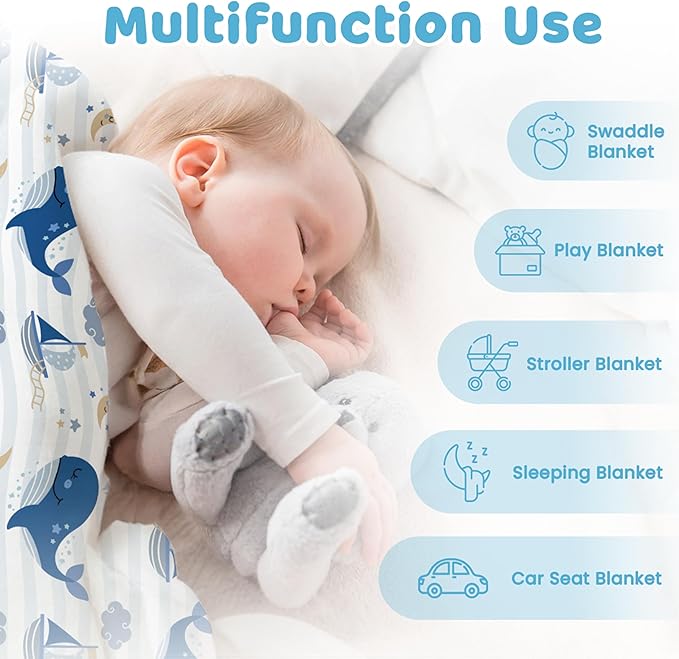 - Comfortable material: the baby blanket is light, ensuring your little one stay comfortable all year round; one side features a smooth surface while the other is 3D dotted
