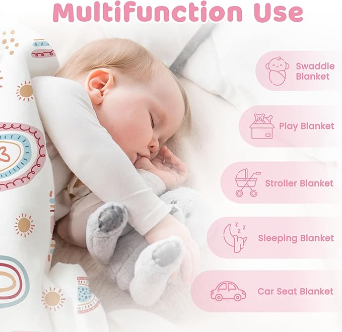 - Comfortable material: the baby blanket is light, ensuring your little one stay comfortable all year round; one side features a smooth surface while the other is 3D dotted
