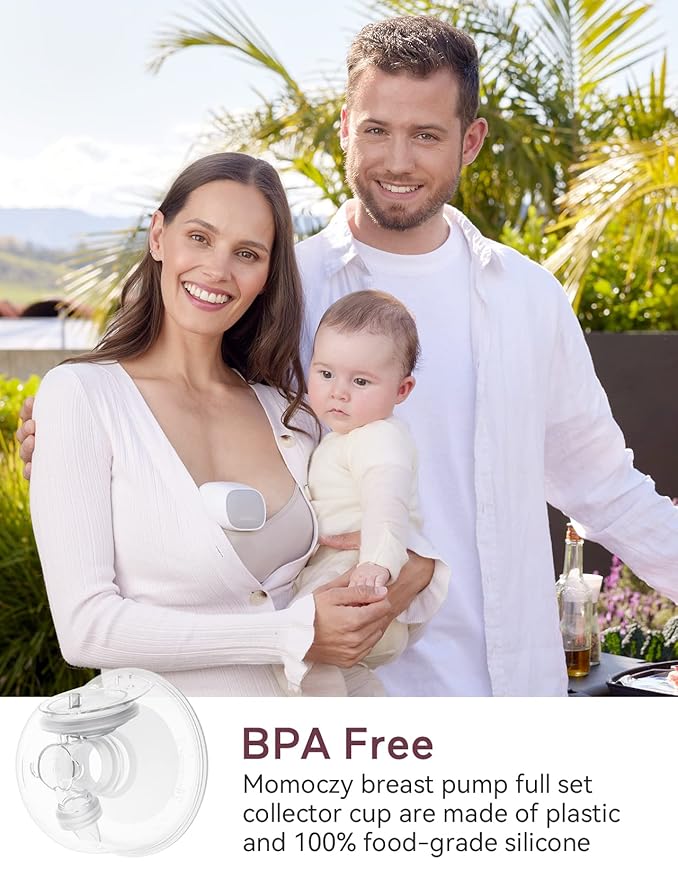 - BPA-free, made of food-grade silicone and plastic material. All Momcozy pump parts that come in contact with breast milk are BPA-free, giving you peace of mind about your baby's milk.