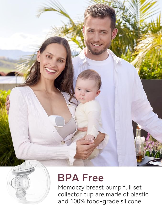 - BPA-free, made of food-grade silicone and plastic material. All Momcozy pump parts that come in contact with breast milk are BPA-free, giving you peace of mind about your baby's milk.