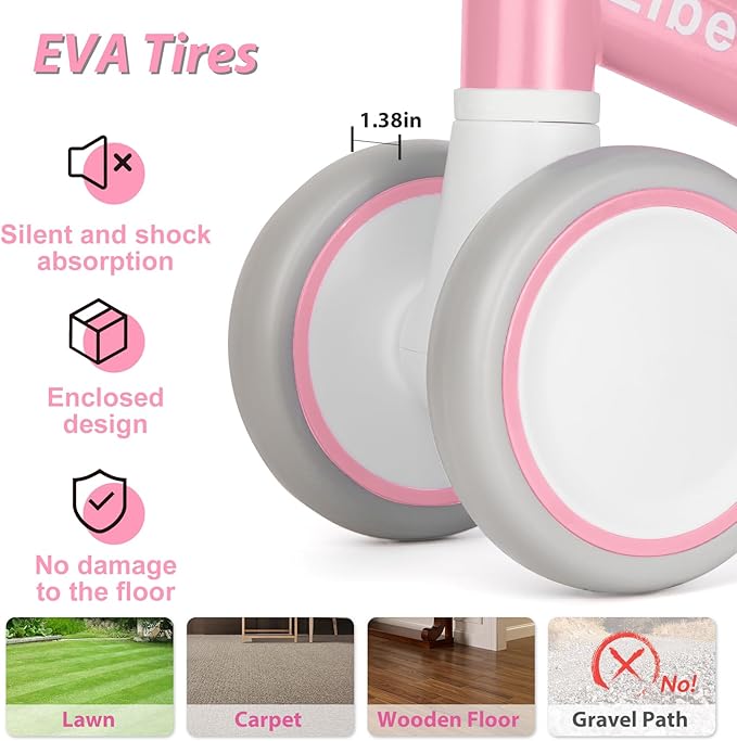 - PROMOTES DEVELOPMENTAL SKILLS: Liberry baby balance bicycle assists in fostering baby's balance ability, enhancing their gross motor skills, and refining their overall body coordination. This early introduction to physical activity lays a strong foundation for their holistic development