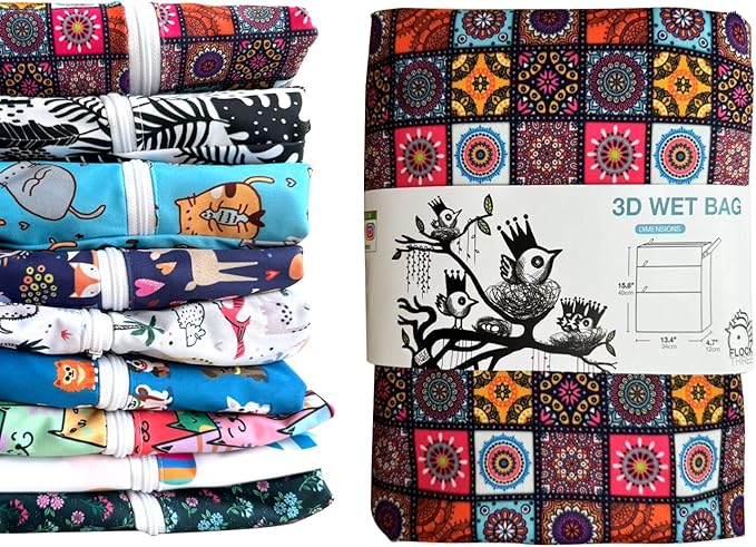 - WATERPROOF AND REUSABLE: FLOCK THREE 3D wet bags are made from water-resistant TPU. The wet bags are reusable&double layered (both inner and outer) and, BPA-free, are tested to be safe for babies. These bags are a smooth zipper, durable with high quality finishing, machine washable and dryer. FLOCK THREE wet bags are your trustworthy travel companions.