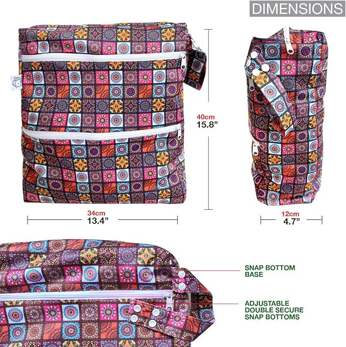 - LARGE SIZE BIG CAPACITY: This 3D wet bag is large size: 15.8’’ x 13.4’’ x 4.7’’ (40cm x 34cm x 12cm). It can hold approximately 20 -30 cloth diapers. Lightweight, easy to carry. Normal storage of non-sharp and non-corrosive stuffs like your clothings, diapers, milk powder etc should be good. It can use as a wet/dry bag, depending on your lifestyle needs. These bags are perfect for camping or travel activities.