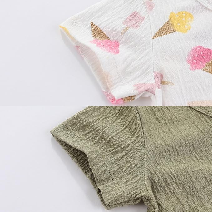 - Cute Two Piece Set: Bright and vivid colors with cute cartoon patterns can be used as a basic daily wear and also perfect for photo shoots. Together with the uniqueness of the fabric, the romper is comfortable to wear in spring, summer and fall