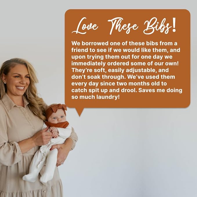 - PREMIUM 4-LAYER MUSLIN COTTON FOR MAXIMUM ABSORPTION - Made with four layers of buttery soft muslin cotton and a plush terry inner core, these baby bibs for drooling and teething are thick enough to soak up drool, spit-up, and food messes without feeling bulky. The dense yet breathable weave keeps baby’s outfit clean and dry, while maintaining softness against delicate skin-all day long.