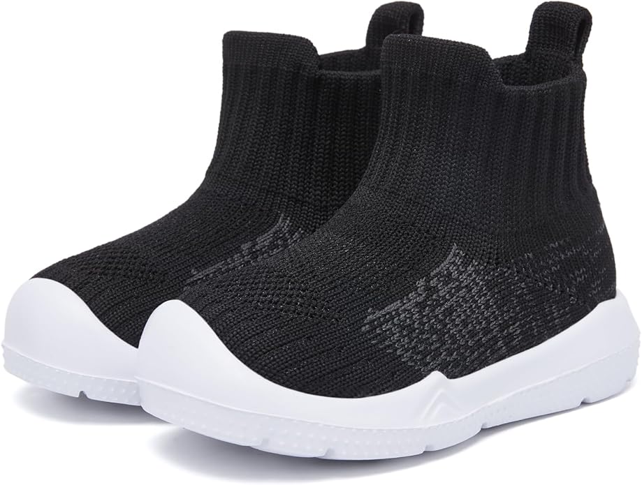 - Friendly Sock-like Upper: Sock-like stretchy textile construction upper hugs the foot to keep them comfortable and flexible when babies are on the move. Baby sock shoes made of soft fabric knit are also friendly to the skin, healthy, and very safe for infant babies.