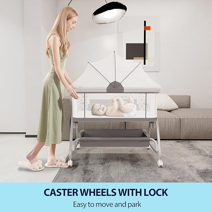 - 3 IN 1 BEDSIDE BASSINET FOR BABY: Luvkixen bedside bassinet for baby can function as a bedside sleeper, rocking bassinet or stand-alone baby crib. Easily switch between modes by adjusting the wheels or taking down the side bar. Plus, the lockable wheels ensure stability, giving you peace of mind while your baby sleeps.