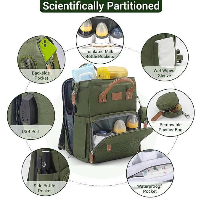 - 【Large Capacity Multifunction】 Our Diaper Bag Backpack is designed with 16 pockets, scientifically partitioned to hold all essential items such as diapers, creams, wipes, and more. It also features 3 insulated pockets for bottles, keeping them warm or cool as needed. With its generous capacity, this backpack can even accommodate a laptop or breast pump. Soft Changing Pad:makes a baby comfortable while changing.