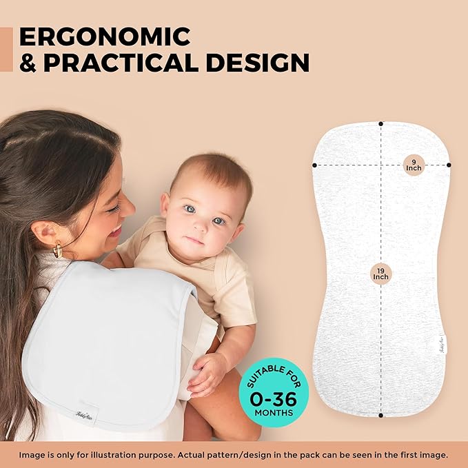- ๐ Extra-Large Coverage, Less Mess ๐ Measuring 21 x 10 inches, each cloth provides generous shoulder and chest coverage to catch every drop of drool or spit-up. Whether you're feeding or burping, youโll stay clean and dryโno need for outfit changes mid-day.