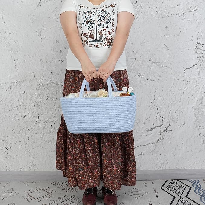 Diaper Caddy Organizer Cotton Rope Baby Basket Nursery Storage and Portable Tote Bag for Car Ideal Baby Shower Gifts and Registry Must-Have for Newborn Essentials Large blue