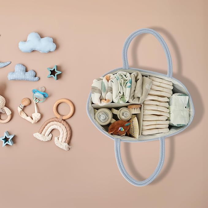 - Flexible and Portable Diaper basket with removable divider: Featuring handles for effortless transportation, our diaper change caddy includes removable dividers for personalized organization. Adjust the internal layout as needed to accommodate various baby items. Move seamlessly from room to room or take diaper organizer caddy on the go for convenient access to baby essentials.