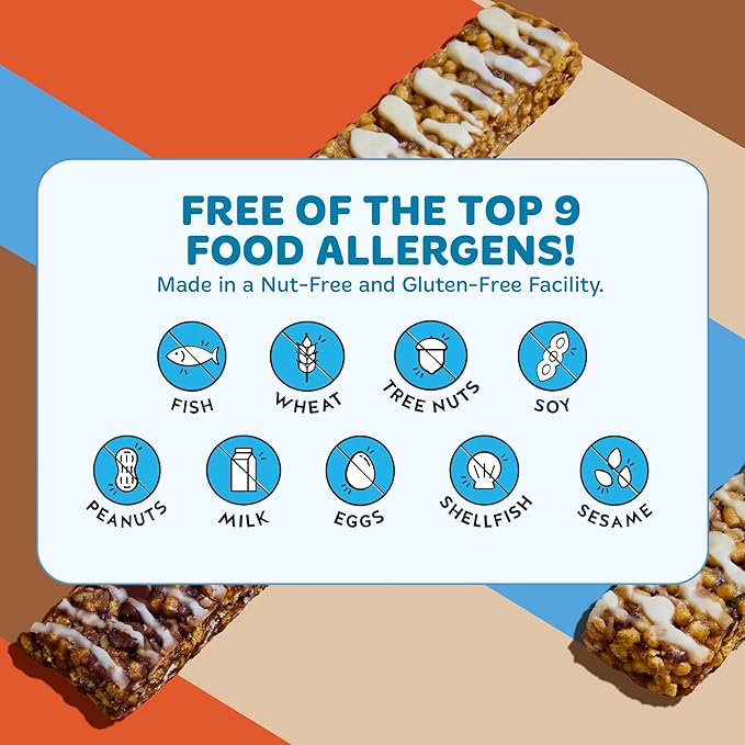 - No Junk – Certified gluten-free, dairy-free, kosher, non-GMO, vegan, and nut free snacks for kids. No preservatives or artificial colors or flavors – just chewy protein bars with a crunchy bite kids crave and parents love to say yes to