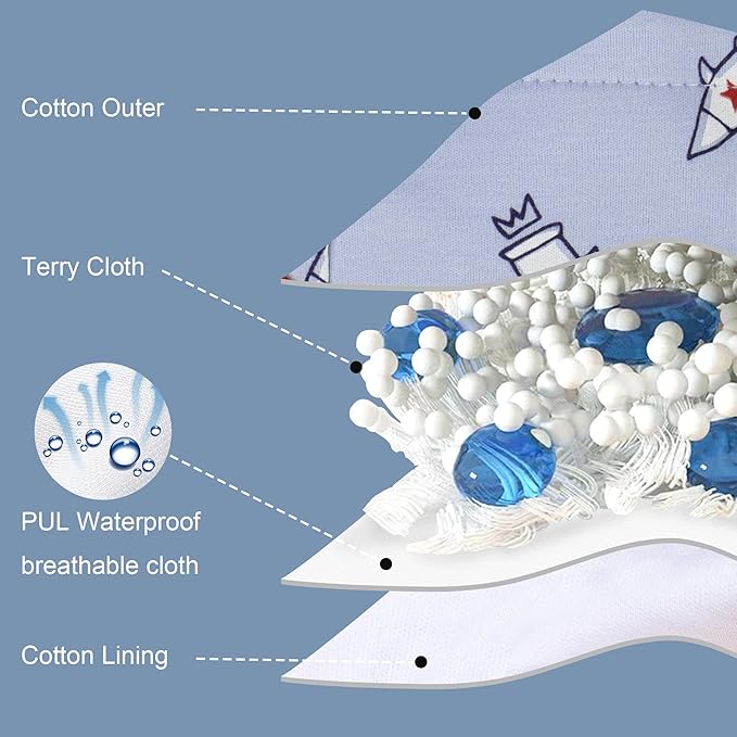 • Premium Quality and Innovation: Our potty training underwear for boys is crafted with eco-friendly, organic materials, including a 100% cotton outer layer and a blend of cotton, and TPU for the inner layers. This combination ensures maximum softness, high urine absorption, and gentle care for sensitive skin, reducing the risk of diaper rash. These underpants are machine-washable, and reusable.
