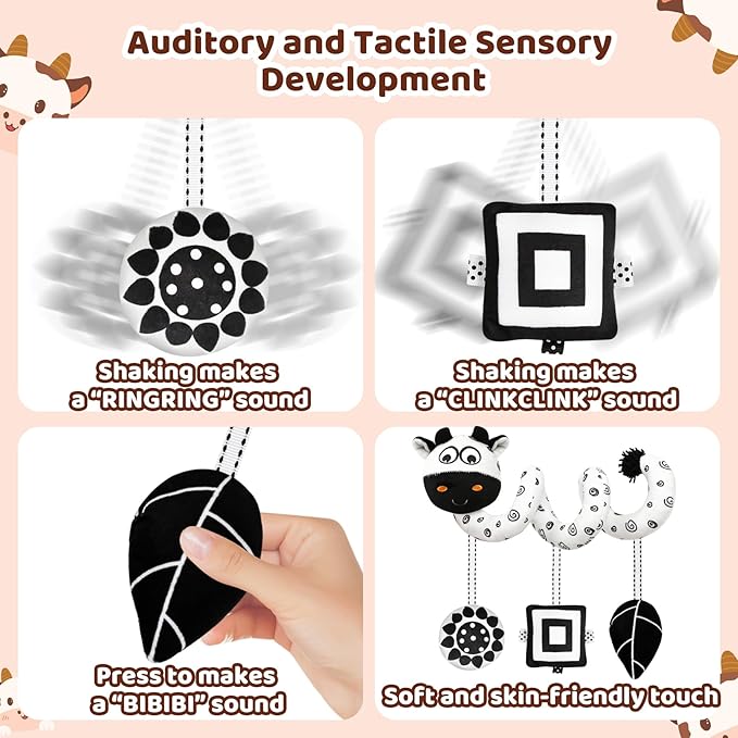 - Black and White Baby Toys:Engage your little one with our innovative high contrast baby toys for newborn. Featuring a bold black and white baby toys design, these newborn toys use striking contrasts to boost visual tracking and color recognition, fostering early sensory development and curiosity from the very start.